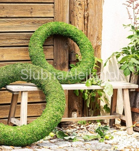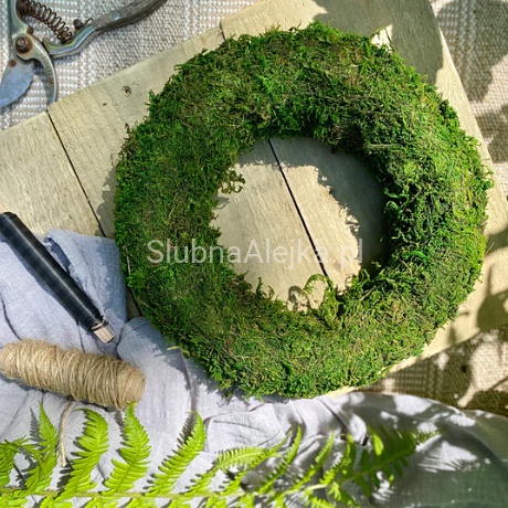 Ten wianek został wykonany z całkowicie naturalnego, zielonego mchu i stanowi bazę do wykonania dekoracji kościoła lub sali weselnej. Jest to dekoracja florystyczna, a zatem do jej udekorowania wystarczą aplikacje osadzone na miękkim druciku, którym można opleść wianek, aby usztywnić ich mocowanie. Drugim sposobem na zamocowanie dodatków, dekorujących wianek jest wkłuwanie się bezpośrednio w wianek, ponieważ został wykonany z elastycznego materiału. Dekorację można zawiesić na specjalnych stelażach wzdłuż alei prowadzącej do ołtarza, na oparciach krzeseł w sali weselnej lub przy ławach w kościele.