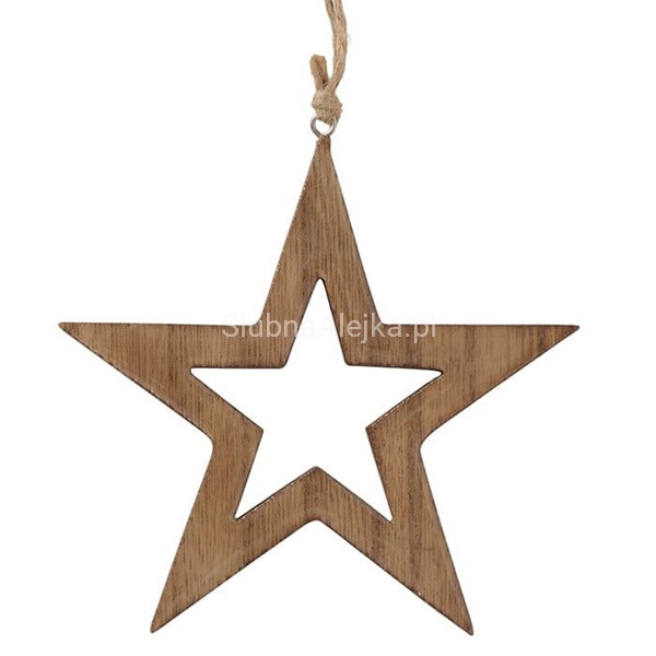 Zawieszka gwiazdka z drzewa na jutowym sznurku to naturalna i praktyczna forma dekoracji, która sprawdzi się by nadać wnętrzu ciepłego, przytulnego klimatu. Wykonana została z drewna, które zachwyca fakturą, ciepłym odcieniem i prostotą formy. Dzięki zawieszce z naturalnej juty dobrze znosi użytkowanie w warunkach komercyjnych.