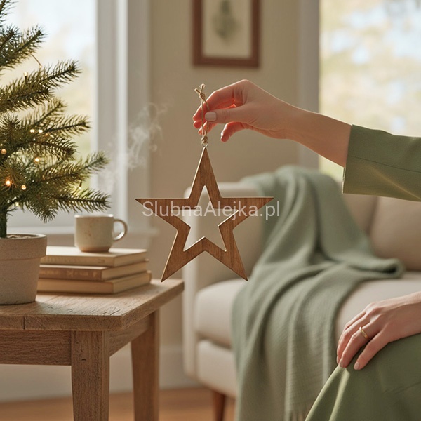 Zawieszka gwiazdka z drzewa to uroczy i romantyczny element bożonarodzeniowej aranżacji