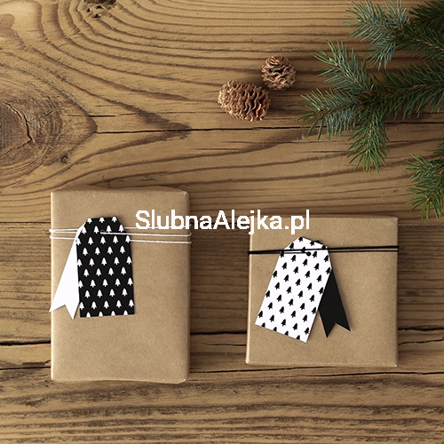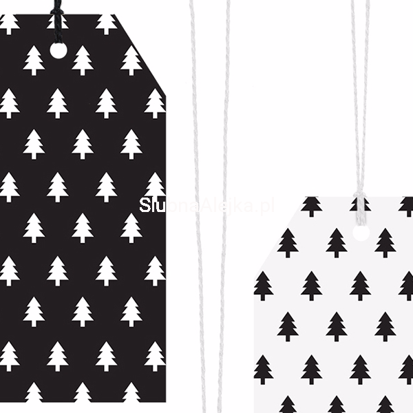 Bardzo praktyczne i eleganckie zarazem zawieszki do prezentów z nadrukiem małych choineczek. Całość utrzymana w stylistyce black&white. Do każdej zawieszki dołączony jest biały sznureczek. Teraz każdy prezent będzie wyglądał wspaniale i szybko trafi do rąk obdarowanego.